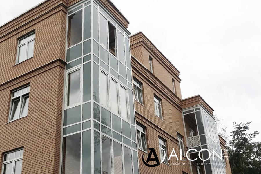 Кроме фасадов зданий, мы выполняем холодное остекление балконов и лоджий. Алюминиевый профиль отличается малым весом и не создает лишней нагрузки на конструкции, что особенно важно для старых домов.